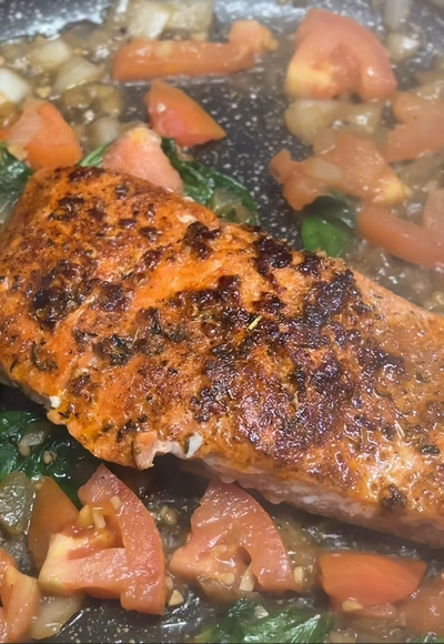 35 MinsChermoula Steelhead Trout with Warm Heirloom Tomatoes and Lentil Salad