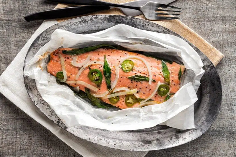 - Toss salmon with asparagus, bell peppers, and cherry tomatoes.
