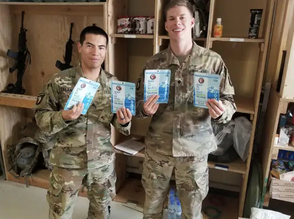 We’re packing boxes of SeaBear Ready to Eat Salmon to send as a special treat to military personnel stationed overseas. Our pouches are fully cooked and designed with unique packaging that makes them perfect for shipping to any environment. We’ve delivered care packages to aircraft carriers, remote outposts in the Middle East, South Asia, and beyond!