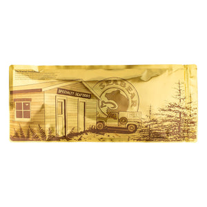 This product utilizes the signature SeaBear Gold Seal Pouch. Each pouch acts like a flexible can, making it versatile and preserving your fully-cooked smoked salmon for four years, with the potential for longer if kept intact. The gold seal pouch eliminates the need for refrigeration, making your salmon ready to eat upon opening.