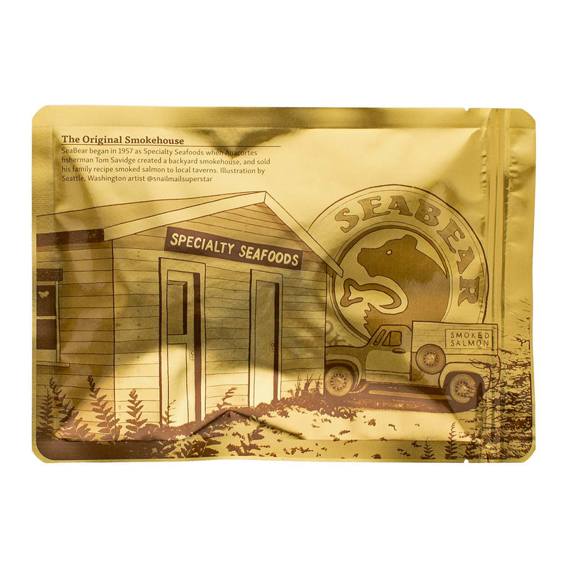 This product utilizes the signature SeaBear Gold Seal Pouch. Each pouch acts like a flexible can, making it versatile and preserving your fully-cooked smoked salmon for four years, with the potential for longer if kept intact. The gold seal pouch eliminates the need for refrigeration, making your salmon ready to eat upon opening.